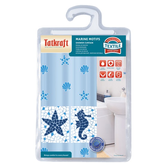 Perdea de dus antibacteriana Marine Motifs-Tatkraft, 180x180cm, impermeabila