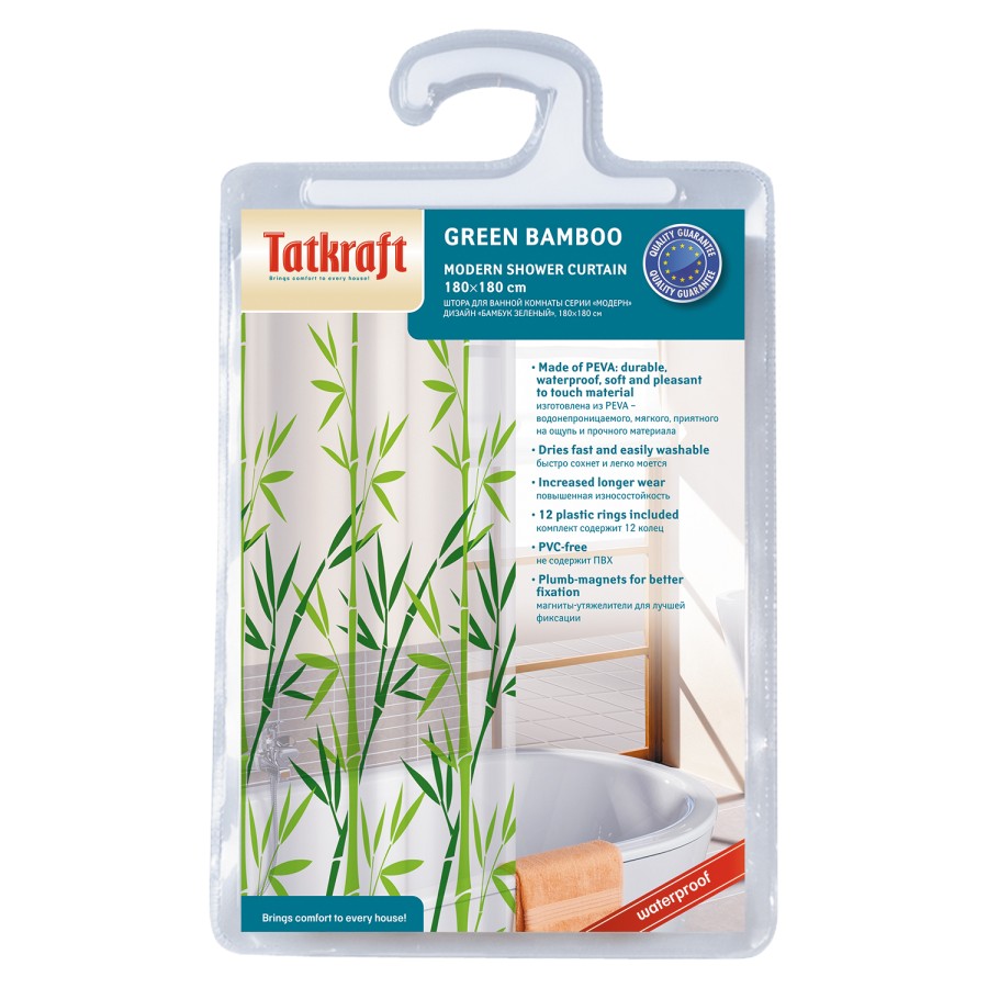Perdea de dus antibacteriana Bamboo Green-Tatkraft, 180x180cm, impermeabila