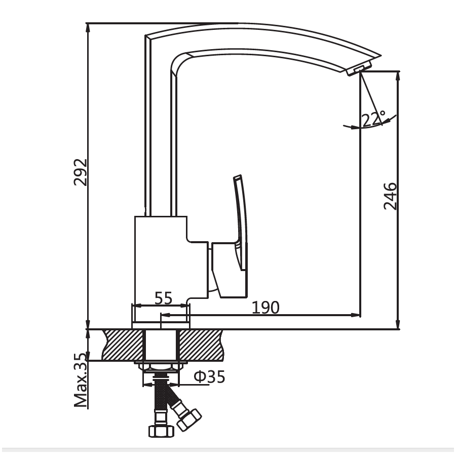 Baterie bucatarie Optima Titanium, TT-048.11, monocomanda, crom, cartus ceramic